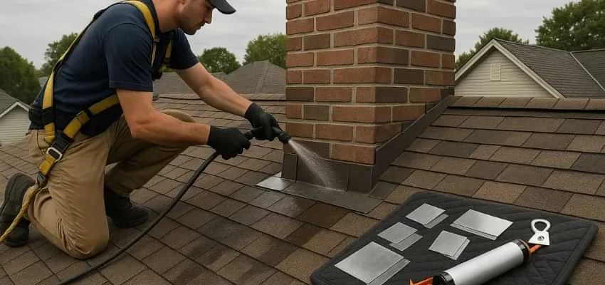 We examine crown slope, cap fit, mortar joints, brick or stone surfaces, and flashing transitions at the roofline. In Ardagh Bluffs, Barrie this area is often the origin of leaks.