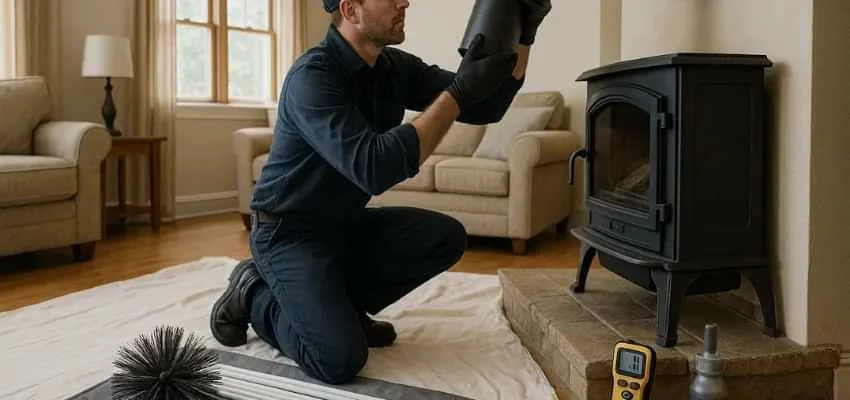 Poor draft causes smoke roll-out and sluggish startups. We evaluate connector angles, reduce unnecessary elbows, fix diameter mismatches, and make sure the cap is clear. After repairs, we perform an energy efficiency tune up to help the stove breathe better in Ardagh Bluffs, Barrie.