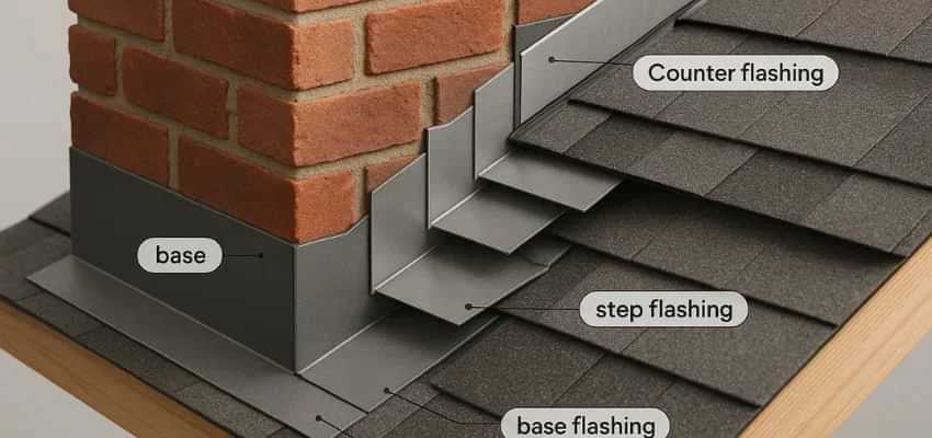 Step flashing tucks under each shingle course along the chimney sides. Counterflashing locks into mortar joints and overlaps those steps. In West Village, Barrie the overlap must be precise to block wind-driven rain. We avoid shortcuts like exposed face-nailing that can loosen and leak later.